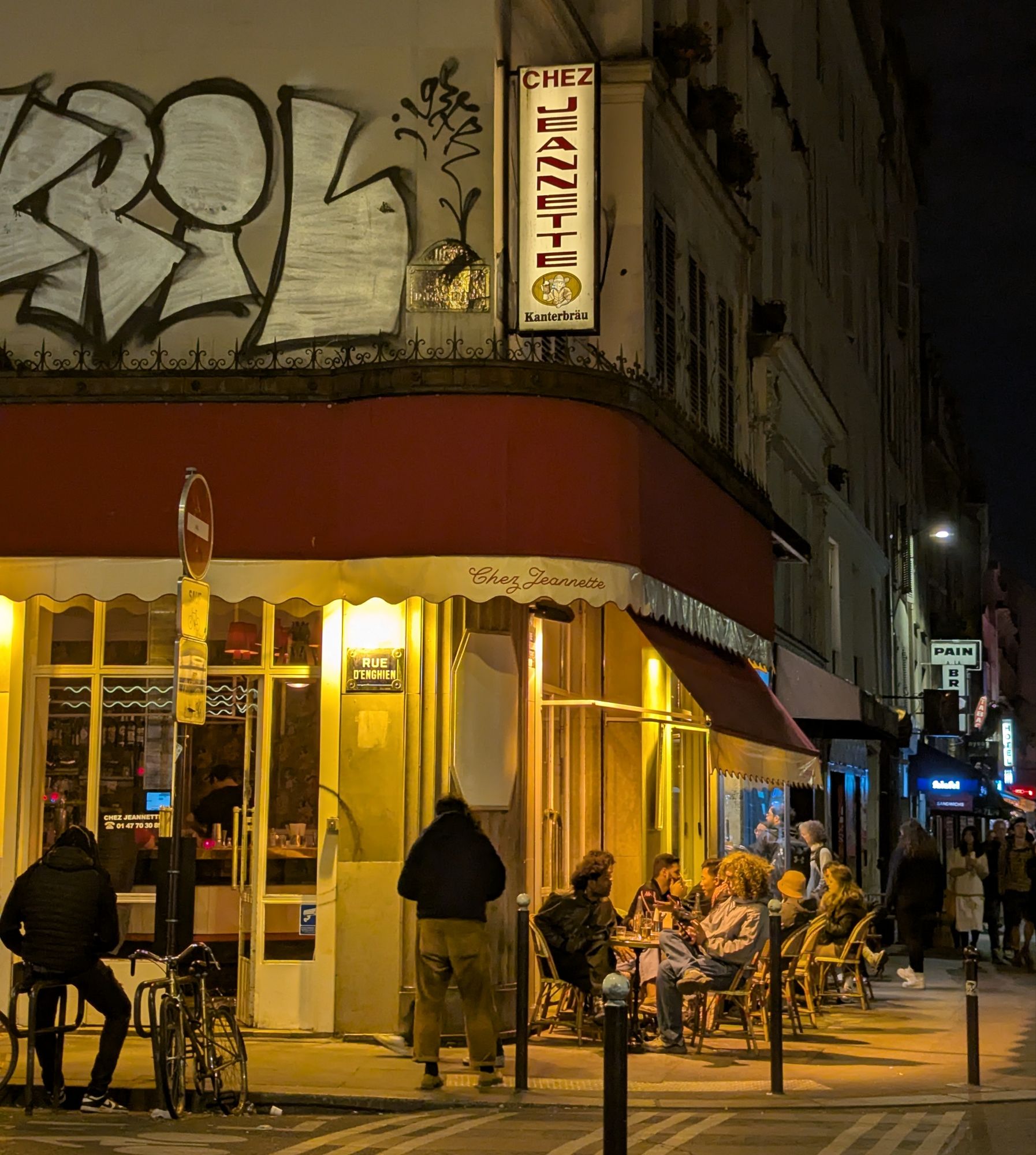 When we were finally disgorged into Gare du Nord which is the busiest station in France we made our way to the streets outside… ‘we made it’! The next leg was to find the rendezvous point for the key exchange which after a brief hiccup had us heading to our apartment with backpacks on and luggage in tow. Upon making it to the outside of the seven story facade we used our security key and walked across the courtyard to the next security point and entered into the small lobby facing the typical Parisien elevator which we had been told in advance was under repair (for the first time in 5 years apparently) so we pivoted to the stairway and carried our wheelie bags up the first flight of stairs. Back in 2019, when we were more robust, we had stayed in an 1850s Haussman building which had no elevator, on the 7th floor. It was 91 steps to the room, which had been our previous benchmark for stairs. Well, being on the top floor again I of course counted each step as we wheezed our way up the circular path. Older now, with a myriad of ailments, and very jetlagged, we were forced to stop twice on our hike to the top (120 stairs). Upon opening the door we had a cursory look at our new home away from home and crashed onto the bed exhausted. I will cover the description of the studio at a later date but the owner had cautioned us in advance not to step on the 3 spots on the floor that were delineated by masking tape so that our feet wouldn’t plunge through the neighbor’s ceiling. It’s supposed to be an adventure, and it is.
