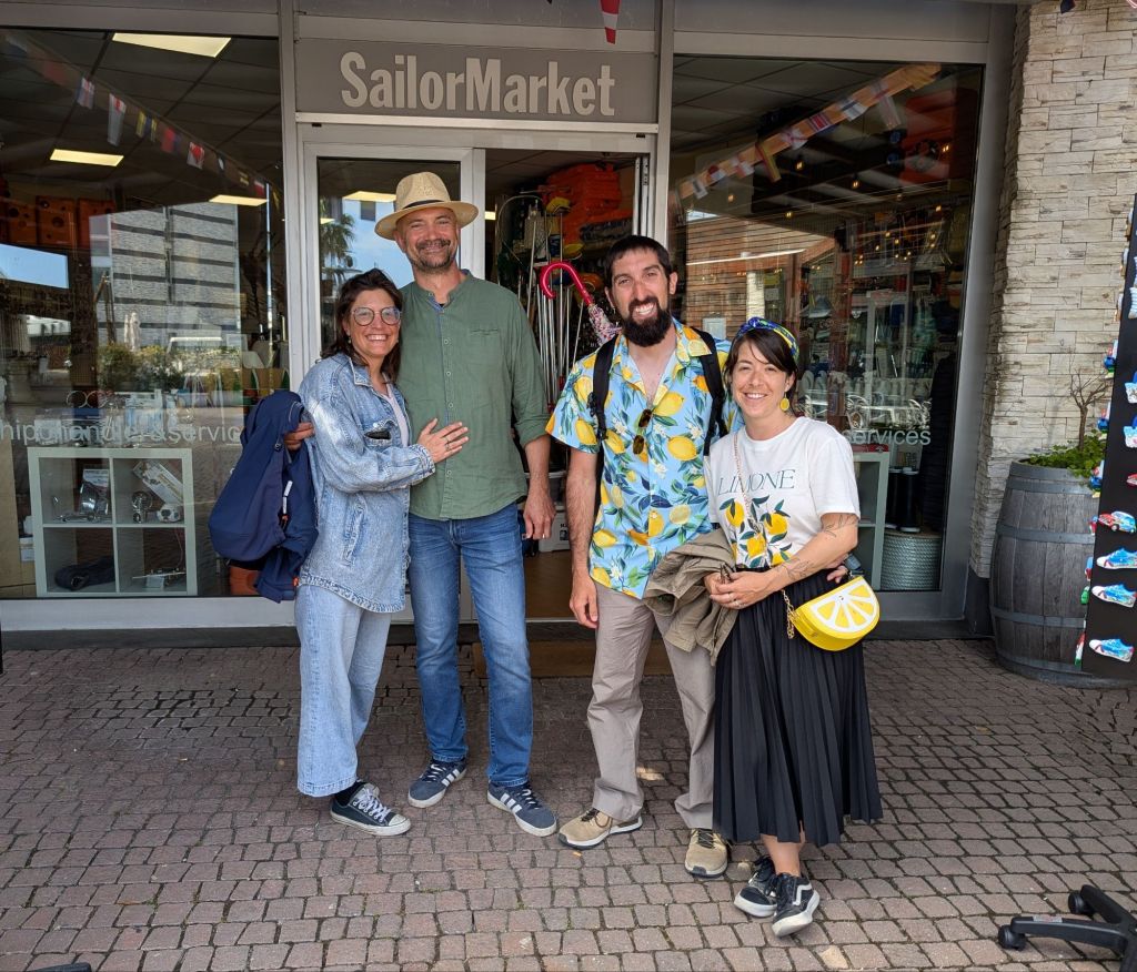 Just as I thought, they too were looking to speak to total strangers. They laughed and casual introductions were made. The maestro was even more dĂ©bonnaire from the front and offered that he was Croatian, living in Italy with his Spaniard partner. Cool. The other couple had just moved to the beach town of Lerici (le-reach-ee) a mere 30 minutes by road and they were from Nova Scotia. I thought God was going to push me into their arms! Carol, while acting as though the many times that I have embarrassed her was somehow bad, came sauntering over and we filled out the sextet. I regaled them with my accomplishments (internet entrepreneur and capable handyman) and we talked back and forth until it was time to disassociate ourselves and we began to walk away, longingly looking back over my shoulder I made one last bold move and asked if I could take their photo and immortalize them on the popular blog, Blue Delivery. Without a moment’s hesitation they drew together and gave their permission with broad smiles and pleasant demeanors. And thus I now offer up their visages.