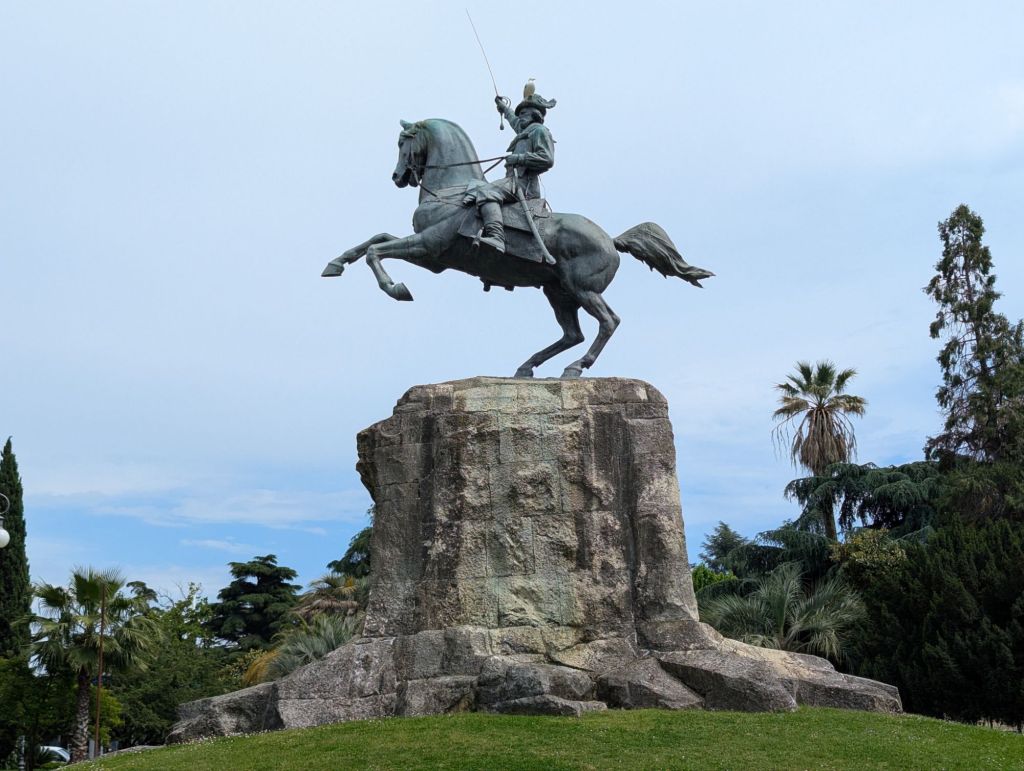 With our first task completed we descended back to the old center and started for the downtown promenade of the inner harbor. Buses were available of course but shoe leather was our transport as per usual and now the skies were balmy and we made our way through the park and visited in front of the statue of Giuseppe Garibaldi, a victorious general and considered one of the fathers of 19th century Italy. The statue was splendid and showed great detail.