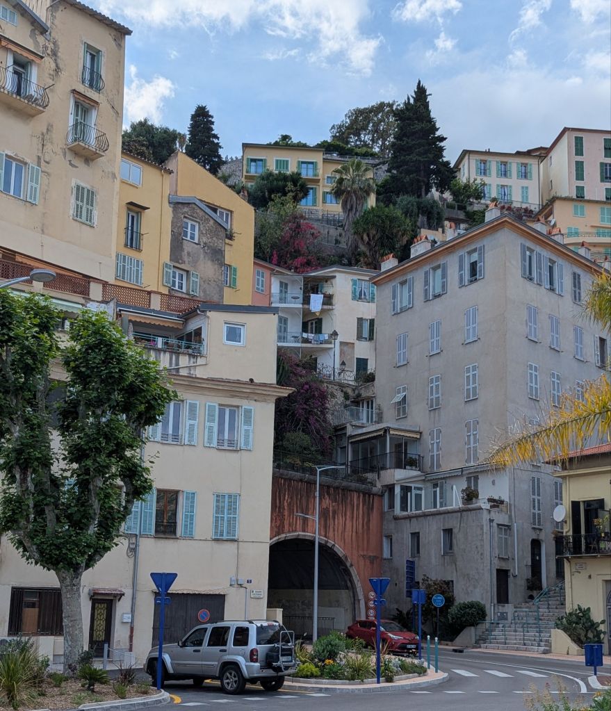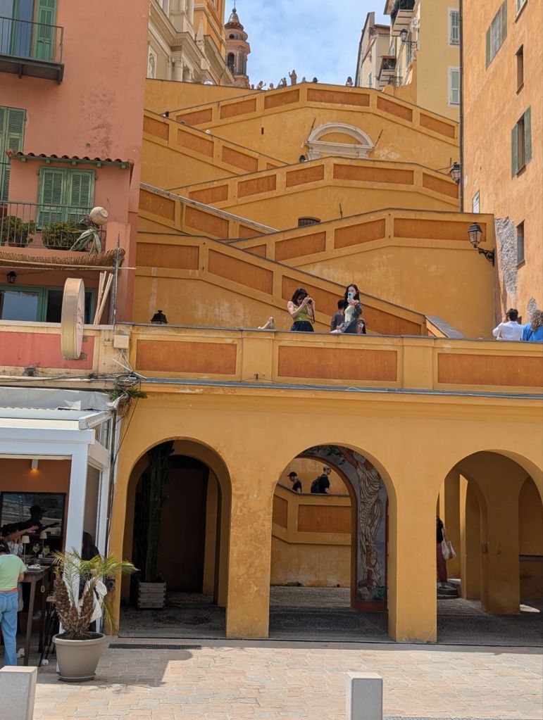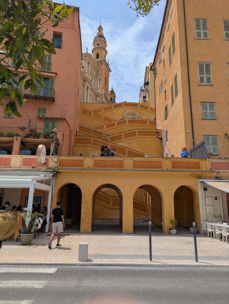 Menton station leads us to the old town, where of course we climb the ancient stairs into the past. Why are there never any cellars into the ancient past?